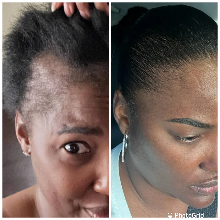Most women notice a difference in 2–3 weeks, with baby hairs and fuller edges appearing after consistent use for 8–12 weeks.