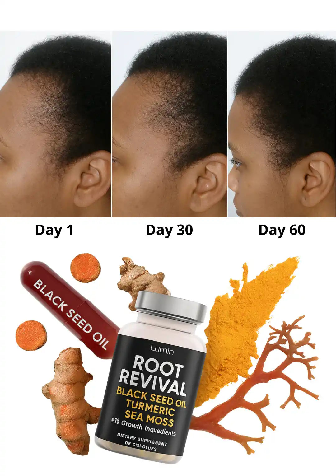 A Natural Supplement by Black Women, For Black Women, that clears inflammation from within & brings back your edges using ancient remedies our ancestors used on a daily basis.