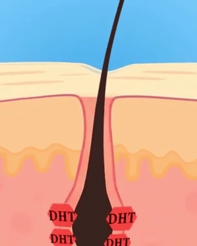 This makes them weaker and smaller until they can't grow healthy hair anymore, ultimately leading to that receding hairline and thinning crown that gets worse every year.