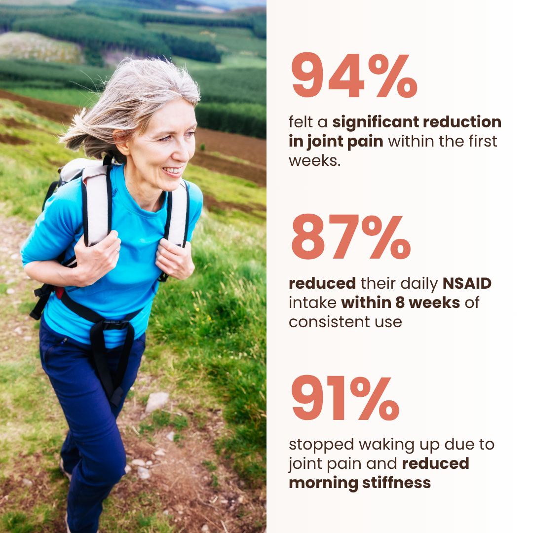 Feel your freedom of movement and physical confidence returning as joint stiffness clears. You'll start recognizing yourself again: active, engaged, and actually wanting to commit to plans. The fear of flares fades as your natural mobility reignites.